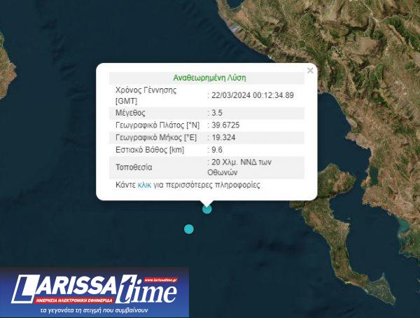 Το επίκεντρο του σεισμού εντοπίζεται 20 χιλιόμετρα ΝΝΔ των Οθωνών ενώ το εστιακό βάθος καταγράφηκε στα 9,6 χιλιόμετρα.