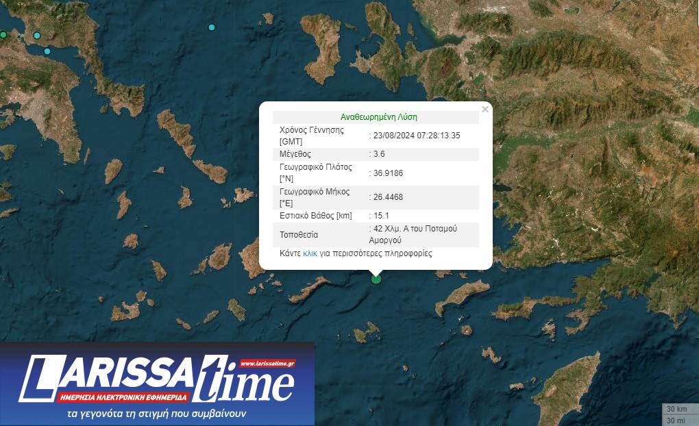 Σύμφωνα με το Γεωδυναμικό Ινστιτούτο, η σεισμική δόνηση ήταν μεγέθους 3,6 βαθμών της κλίμακας Ρίχτερ.
