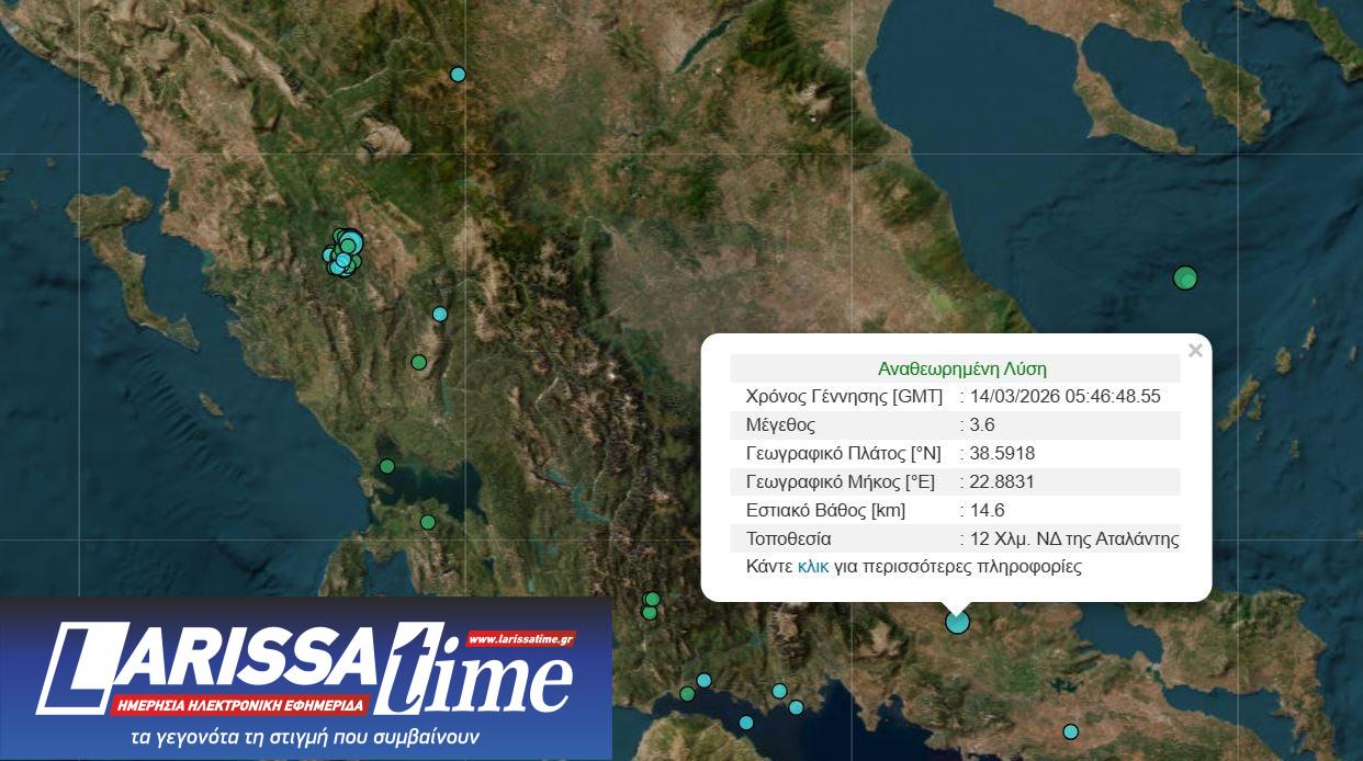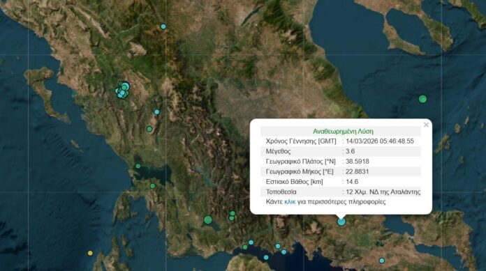 Σεισμός σημειώθηκε τα ξημερώματα του Σαββάτου 14/3 στην περιοχή της Αταλάντης, με τη δόνηση να γίνεται αισθητή σε αρκετές περιοχές της Στερεάς Ελλάδας, όπως η Λαμία.
