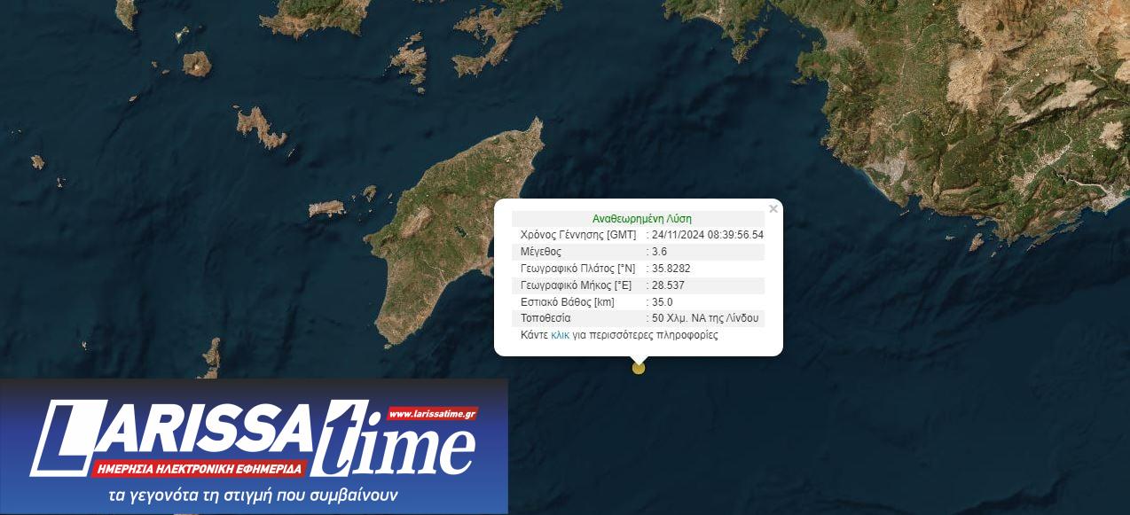 Σεισμός 3,6 της κλίμακας Ρίχτερ σημειώθηκε το πρωί της Κυριακής (24/11), νοτιοανατολικά της Ρόδου.