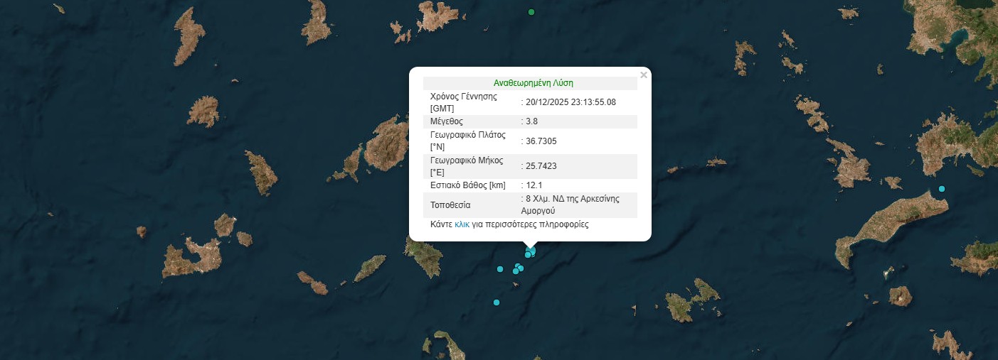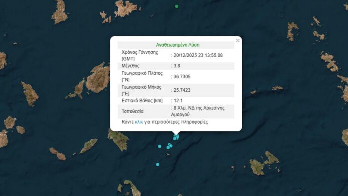 Σεισμός 3,8 Ρίχτερ ανοιχτά της Αμοργού
