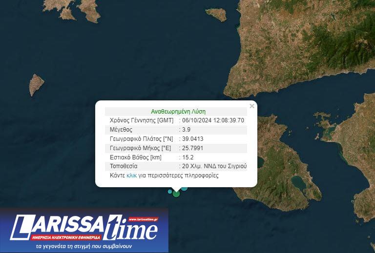 Σεισμός 3,9 βαθμών της κλίμακας Ρίχτερ σημειώθηκε το μεσημέρι της Κυριακής (6/10) ανοιχτά της Λέσβου.