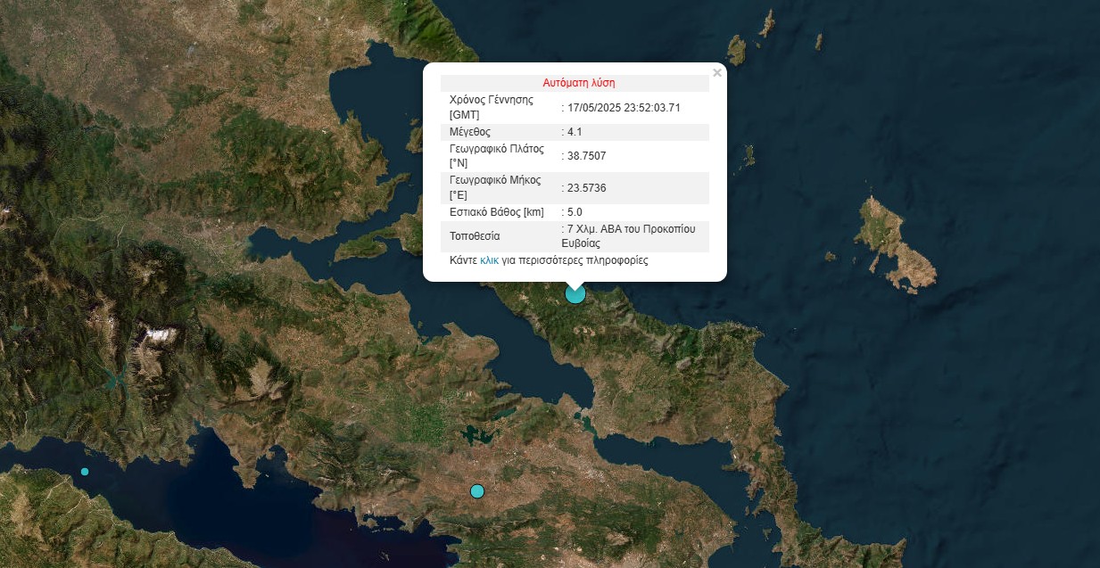 Σεισμός μεγέθους 4,1 βαθμών της κλίμακας Ρίχτερ σημειώθηκε τα ξημερώματα της Κυριακής στην Εύβοια.