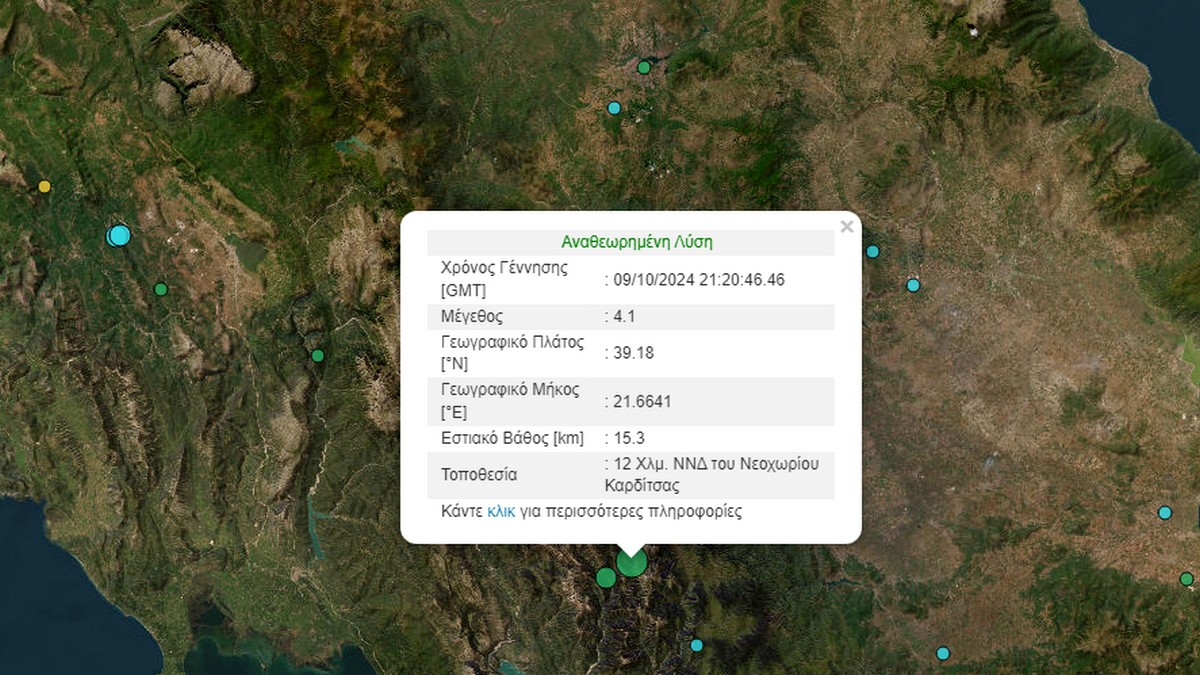 Σεισμός μεγέθους 4,1 βαθμών της κλίμακας Ρίχτερ σημειώθηκε λίγη ώρα μετά τα μεσάνυχτα της Τετάρτης στην Καρδίτσα.