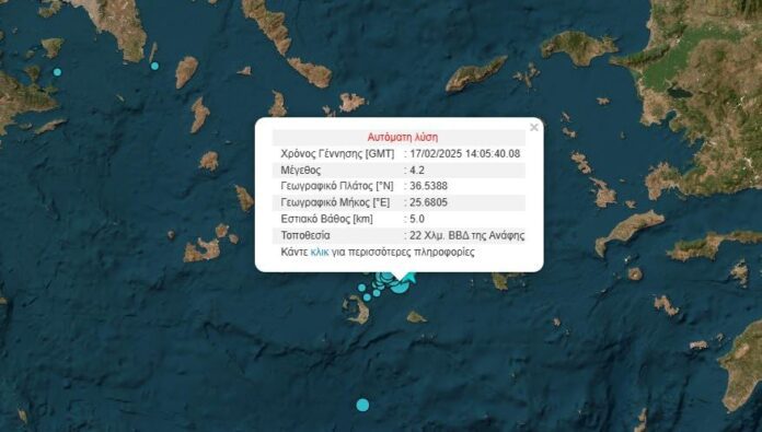 Σεισμός 4,2 Ρίχτερ ανοιχτά της Αμοργού