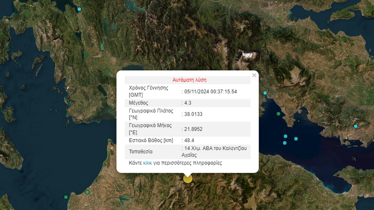 Σεισμός μεγέθους 4,3 βαθμών της κλίμακας Ρίχτερ σημειώθηκε τα ξημερώματα της Τρίτης 05 Νοεμβρίου στην Αχαΐα.