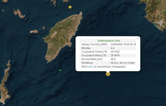 Σεισμός 4,4 βαθμών της κλίμακας Ρίχτερ σημειώθηκε πριν από λίγο ανοιχτά της Ρόδου.