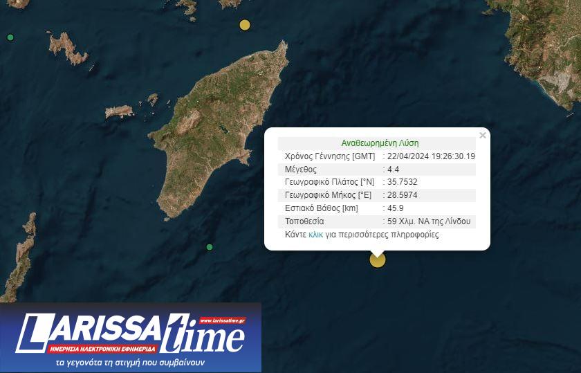 Σύμφωνα με την αναθεωρημένη λύση του Γεωδυναμικού Ινστιτούτου Αθηνών, το επίκεντρο του σεισμού εντοπίζεται 59 χλμ. νοτιοανατολικά της Λίνδου ενώ το εστιακό βάθος υπολογίζεται στα 45,9 χλμ.