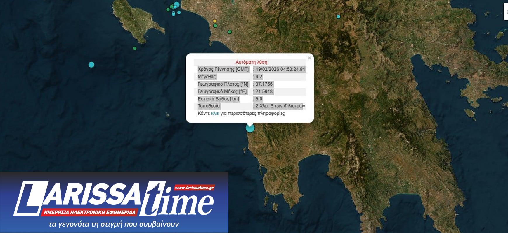 Σεισμός σημειώθηκε το πρωί της Πέμπτης στα Φιλιατρά, μεγέθους 4,4 ρίχτερ.
