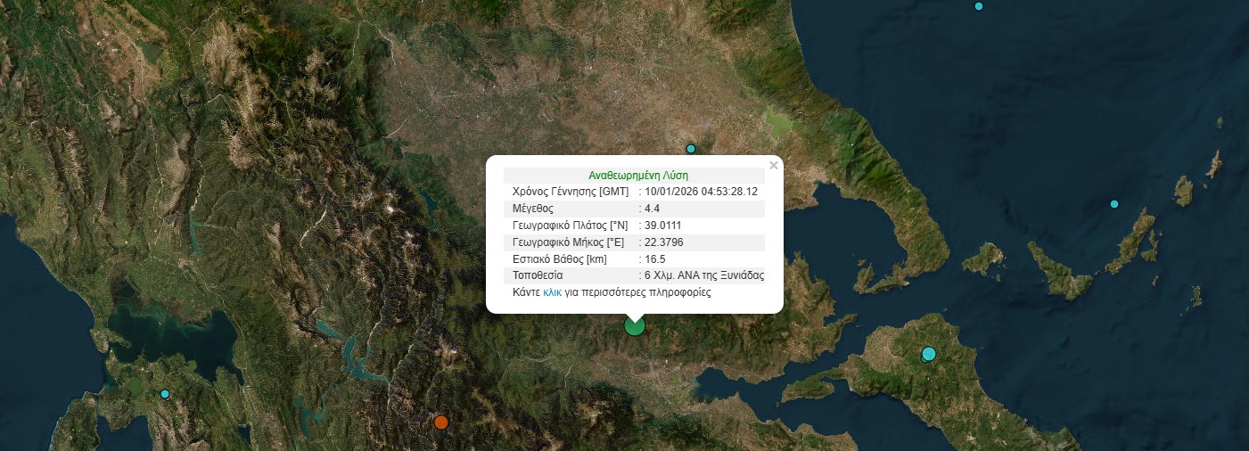Σεισμός 4,4 βαθμών της κλίμακας Ρίχτερ σημειώθηκε το πρωί του Σαββάτου στην Ξυνιάδα Φθιώτιδας