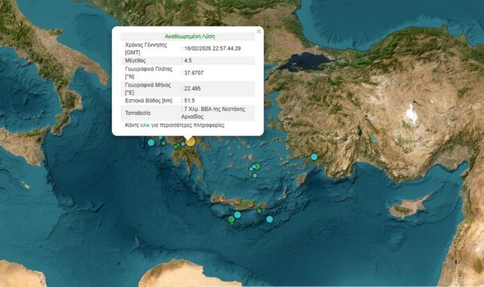 Συγκεκριμένα, σύμφωνα με την αναθεωρημένη λύση του Γεωδυναμικού Ινστιτούτου, ο σεισμός είχε μέγεθος 4,5 ρίχτερ και σημειώθηκε στις 00:57 μετά τα μεσάνυχτα της Δευτέρας σε εστιακό Βάθος 51,5 χιλιομέτρων, 7 χιλιόμετρα βορειοανατολικά της Νεστάνης Αρκαδίας και 22 χιλιόμετρα περίπου βορειοανατολικά της Τρίπολης.