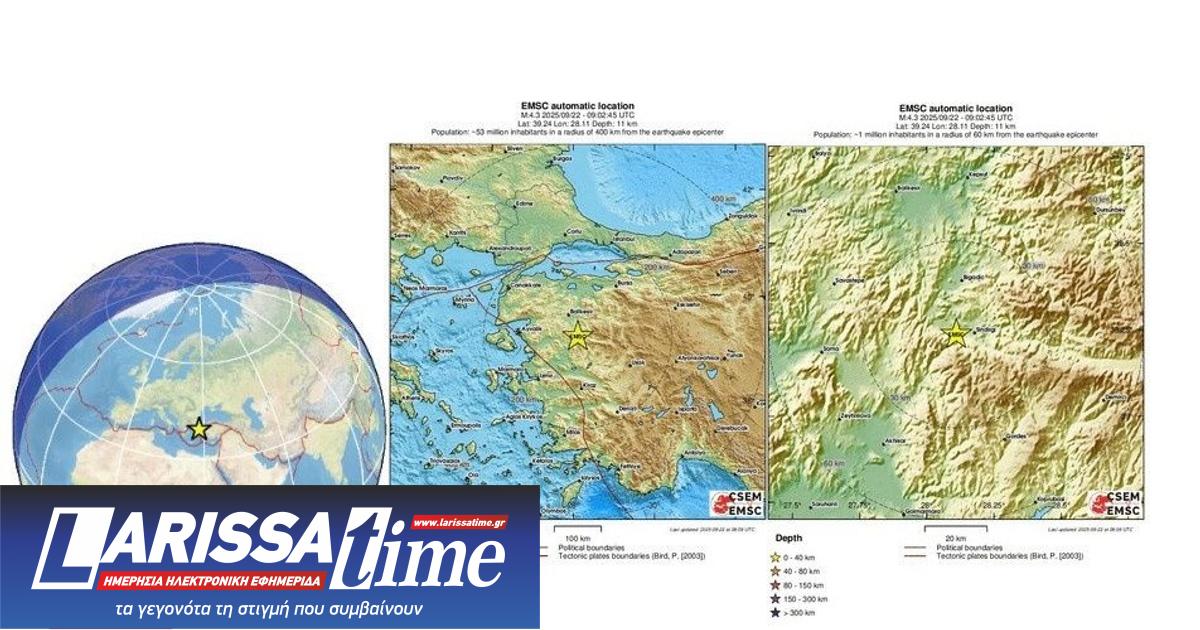 Σεισμική δόνηση μεγέθους 4,5 Ρίχτερ σημειώθηκε το πρωί της Δευτέρας (22/9) στην Τουρκία, ενώ μάλιστα ήταν αισθητός μέχρι και την Μυτιλήνη και τη Χίο.