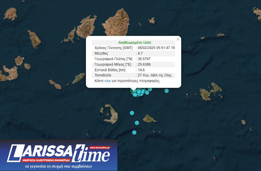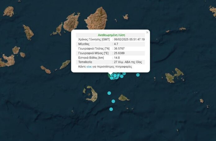Σεισμός 4,7 Ρίχτερ ανοιχτά της Αμοργού
