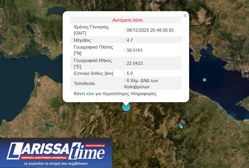 Σεισμός 4,7 Ρίχτερ στα Καλάβρυτα