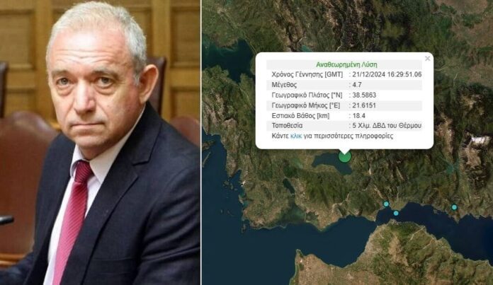 Ισχυρός σεισμός 4,7 βαθμών της κλίμακας Ρίχτερ σημειώθηκε το απόγευμα του Σαββάτου (21/12) στην Αιτωλοακαρνανία.