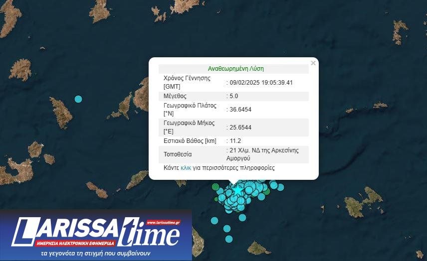 Σεισμός 5 Ρίχτερ σημειώθηκε πριν από λίγο ανοιχτά της Αμοργού.