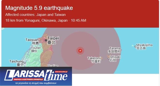 Σεισμός μεγέθους 5,9 βαθμών της κλίμακας Ρίχτερ σημειώθηκε κοντά στη βορειοανατολική ακτή της Ταϊβάν, σύμφωνα με τα στοιχεία που παρείχε το Ευρωπαϊκό-Μεσογειακό Σεισμολογικό Κέντρο (EMSC).