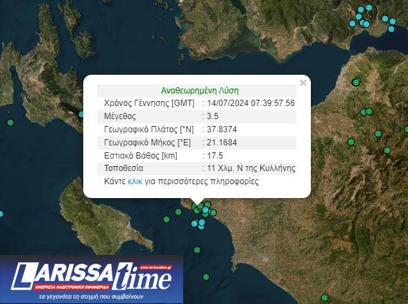 Σύμφωνα με την αναθεωρημένη λύση του Γεωδυναμικού Ινστιτούτου του Εθνικού Αστεροσκοπείου Αθηνών, η σεισμική δόνηση είχε μέγεθος 3,5 βαθμών της κλίμακας Ρίχτερ και το επίκεντρο εντοπίστηκε 11 χιλιόμετρα νότια της Κυλλήνης.