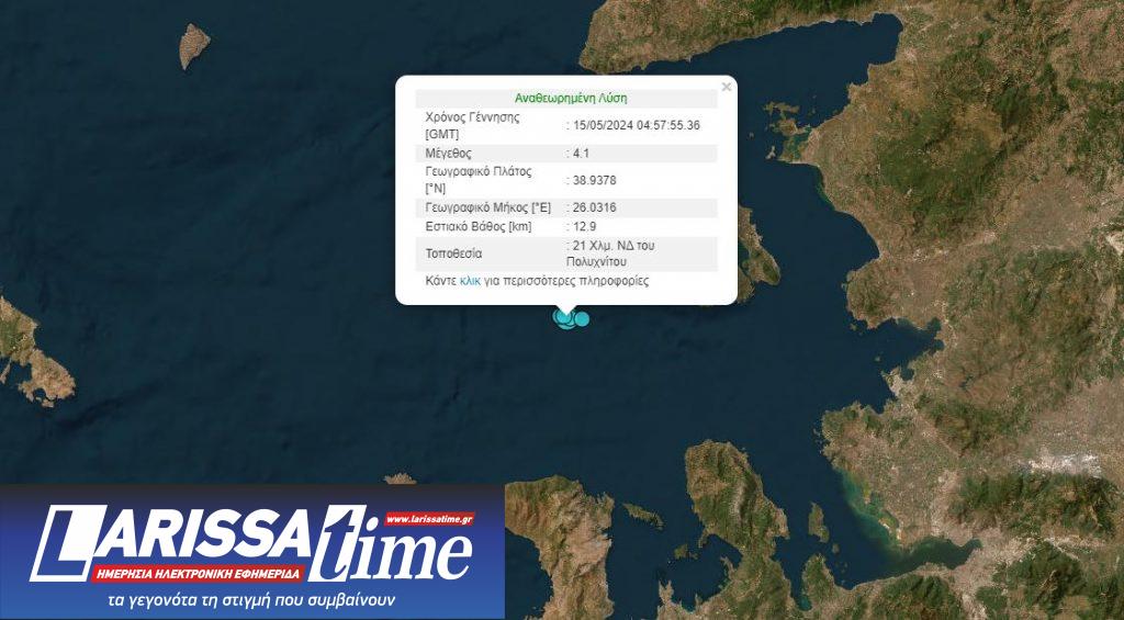 Σύμφωνα με την αναθεωρημένη λύση του Γεωδυναμικού Ινστιτούτου, ο σεισμός είχε επίκεντρο 21 χιλιόμετρα νοτιοδυτικά του Πολυχνίτου, ενώ το εστιακό βάθος της δόνησης ήταν 12,9 χιλιόμετρα.