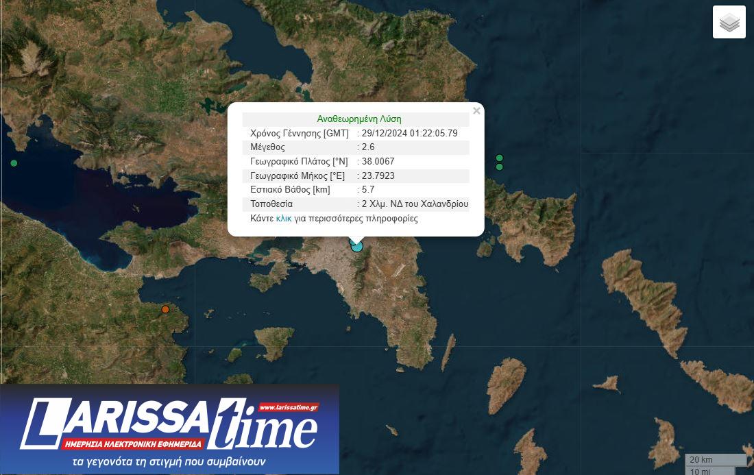 Σύμφωνα με την Αναθεωρημένη Λύση του Γεωδυναμικού Ινστιτούτου ο σεισμός, στις 3:22, είχε επίκεντρο στο Χαλάνδρι και μέγεθος 2,6 Ρίχτερ.