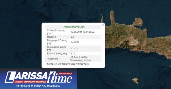 Μόλις δέκα λεπτά νωρίτερα, σημειώθηκε μια δόνηση 3,1 Ρίχτερ, 55 χιλιόμετρα δυτικά-νοτιοδυτικά της Παλαιοχώρας Χανίων.