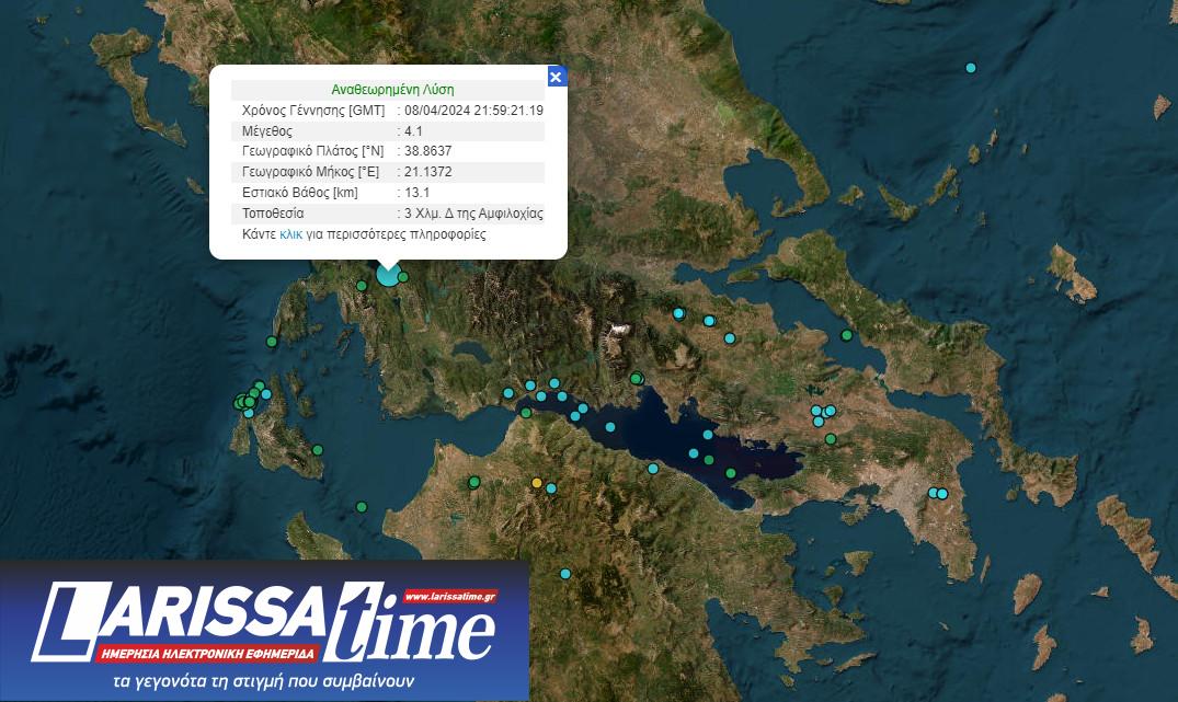 Αναστάτωση προκλήθηκε στην Αιτωλοακαρνανία λίγο πριν τη 01:00 τα ξημερώματα της Τρίτης (9/4) από τη σεισμική δόνηση των 4,1 βαθμών της κλίμακας Ρίχτερ, που σημειώθηκε κοντά στην Αμφιλοχία.