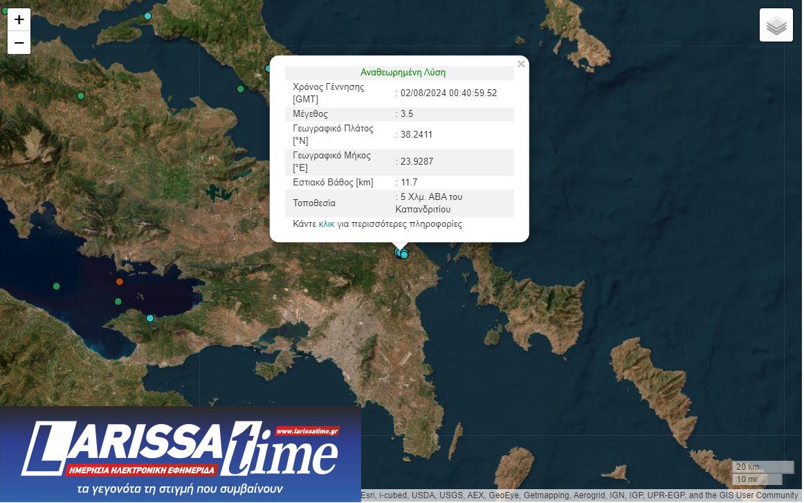 Σύμφωνα με το Γεωδυναμικό Ινστιτούτο το επίκεντρο εντοπίζεται 5 χιλιόμετρα ανατολικά βορειοανατολικά του Καπανδριτίου.