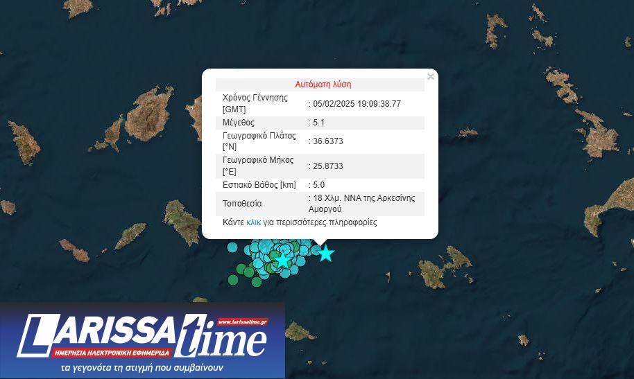 Κατά το Γεωδυναμικό Ινστιτούτο του Εθνικού Αστεροσκοπείου Αθηνών, η δόνηση ήταν μεγέθους 5,1 Ρίχτερ. Σημειώθηκε 18 χλμ. ΝΝΑ της Αρκεσίνης Αμοργού, σε εστιακό βάθος 5 χλμ.