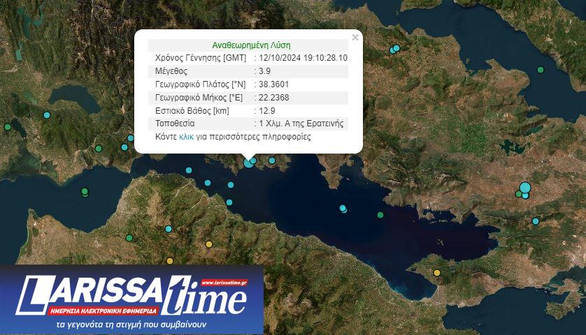 Σεισμός 3,9 Ρίχτερ σημειώθηκε το βράδυ του Σαββάτου στη Φωκίδα και συγκεκριμένα ένα χλμ ανατολικά της Ερατεινής.