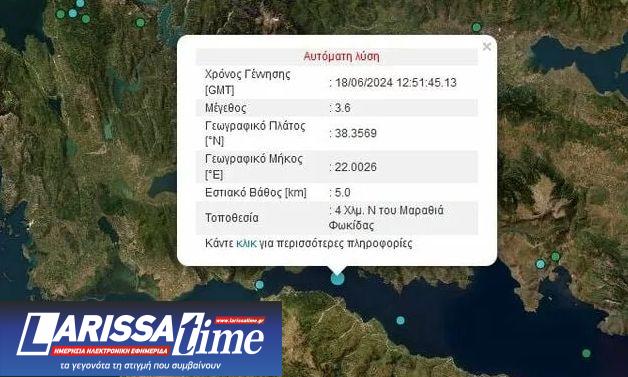 Το επίκεντρο εντοπίζεται στα 7 χιλιόμετρα νότια του Μαραθιά Φωκίδας.