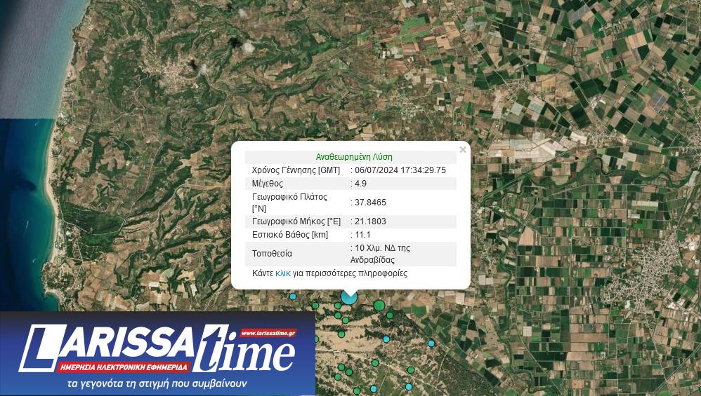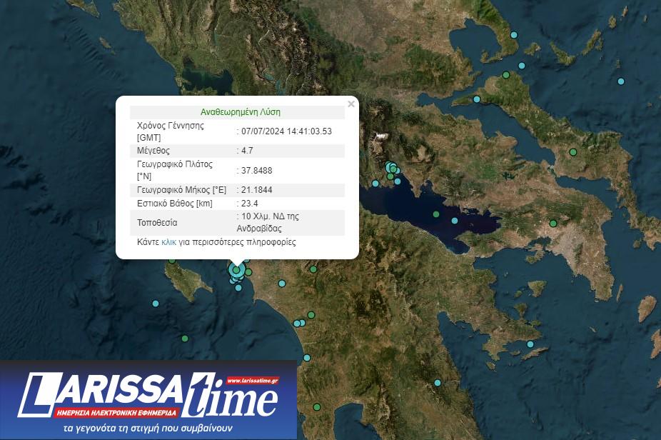Σύμφωνα με το Γεωδυναμικό Ινστιτούτο, ο σεισμός είχε επίκεντρο τα 17 χιλιόμετρα νότια νοτιοδυτικά της Ανδραβίδας.