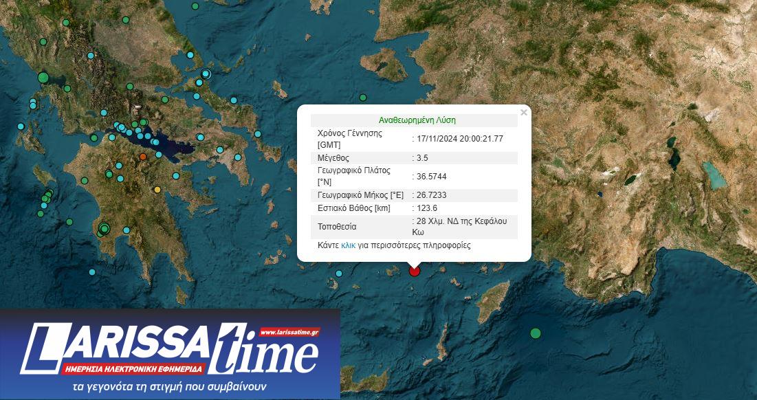 Σύμφωνα με το Γεωδυναμικό Ινστιτούτο του Εθνικού Αστεροσκοπείου Αθηνών, ο σεισμός σημειώθηκε 28 χλμ. ΝΔ της Κεφάλου Κω σε εστιακό βάθος 123 χλμ.