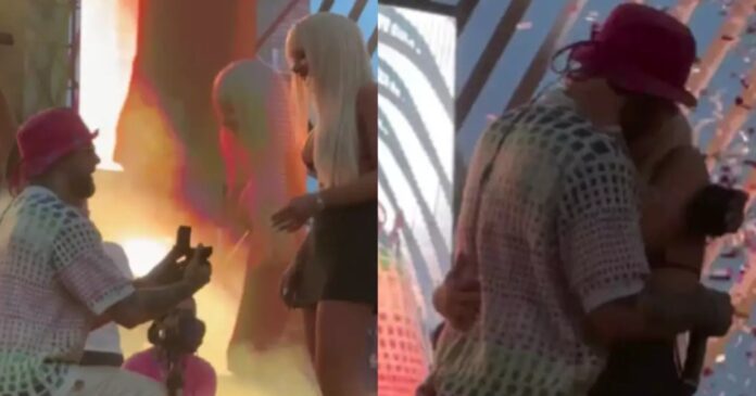 «Αλεξία θα με παντρευτείς;» φώναξε ο ράπερ στο μικρόφωνο ξεσηκώνοντας το κοινό, με την αγαπημένη του να μένει σοκαρισμένη από την αναπάντεχη έκπληξη στη σκηνή του Colourday Festival.
