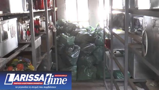 Τα οστά νεκρών σε νάιλον σακούλες σκουπιδιών, στοιβαγμένες σε μια άκρη του οστεοφυλακίου, με την υπεύθυνη για τα νεκροταφεία και Αντιδήμαρχο Μάγδα Μπάρμπα να παραδέχεται πως αυτό συμβαίνει γιατί και τα δυο χωνευτήρια είναι γεμάτα εδώ και πολύ καιρό.