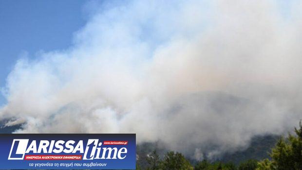 Στο σημείο παραμένουν ισχυρές επίγειες δυνάμεις της πυροσβεστικής.