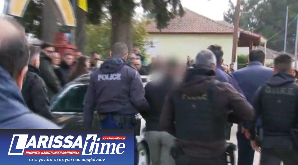 Ο γιος της 52χρονης φτάνει στην κηδεία συνοδευόμενος από την αστυνομία.