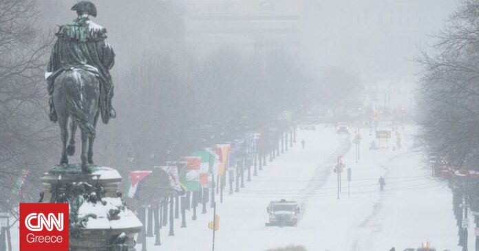 Παχύ στρώμα χιονιού καλύπτει τους δρόμους και τα πεζοδρόμια της Ουάσινγκτον, όπου έχει κηρυχθεί κατάσταση έκτακτης ανάγκης.