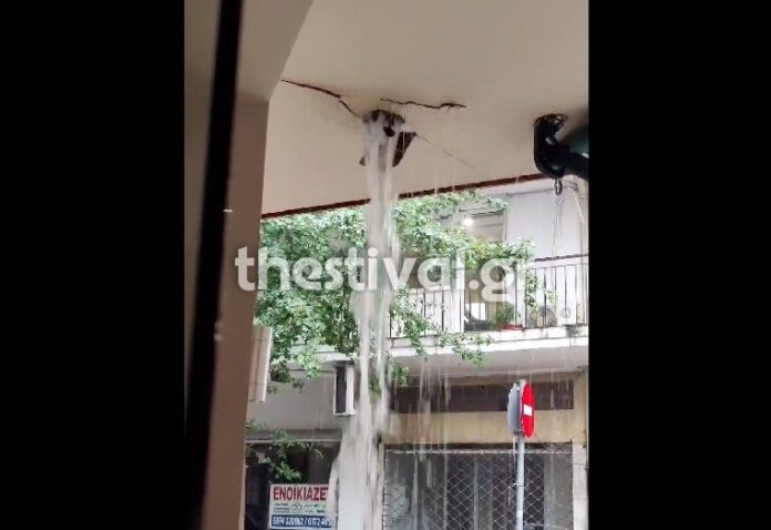 Το νερό τρύπησε οροφή καταστήματος στη Θεσσαλονίκη