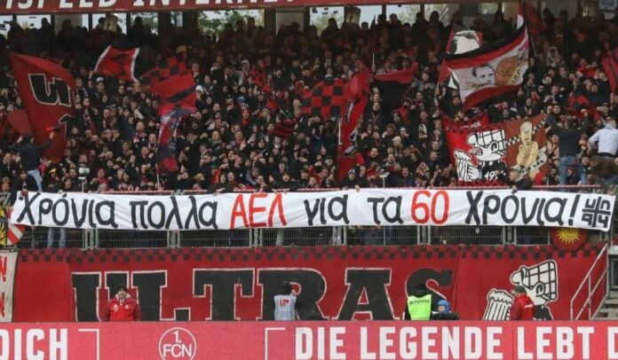 Οι φίλαθλοι της Νυρεμβέργης, Ultras Nurnberg, που είναι αδελφοποιημένοι με τους Monsters της ΑΕΛ, στην αναμέτρηση για τη Β’ Εθνική του Γερμανικού πρωταθλήματος, Νυρεμβέργη-Πάντεμπορν 0-2, που έγινε την Παρασκευή (19/04) στο «Grundig Stadion», ύψωσαν πανό για την ΑΕΛ, με αφορμή τα 60 χρόνια από την ίδρυση της, που έγραφε: “Χρόνια Πολλά ΑΕΛ για τα 60 Χρόνια!”
