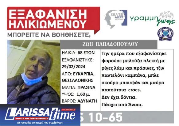 Για τον εντοπισμό της έχει ενεργοποιηθεί Silver Alert – Η γυναίκα πάσχει από άνοια