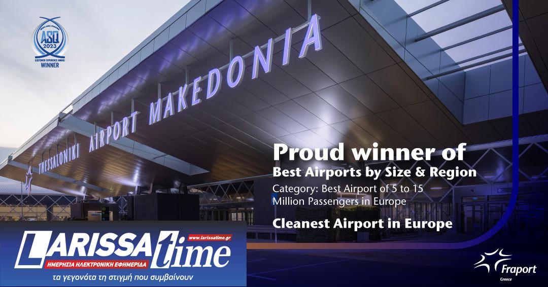 Η διάκριση δόθηκε στη Fraport Greece, κατά τα «2023 Airport Service Quality (ASQ) Awards», στα οποία το αεροδρόμιο της Θεσσαλονίκης βραβεύτηκε για πρώτη χρονιά ως ένα από τα κορυφαία της Ευρώπης, όσον αφορά το επίπεδο καθαριότητάς του.
