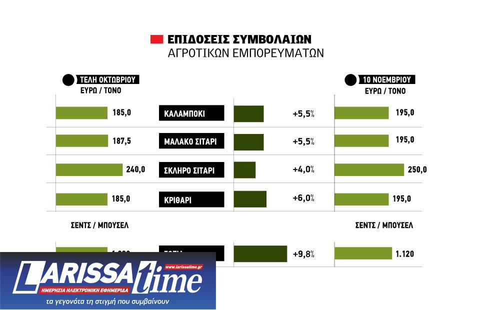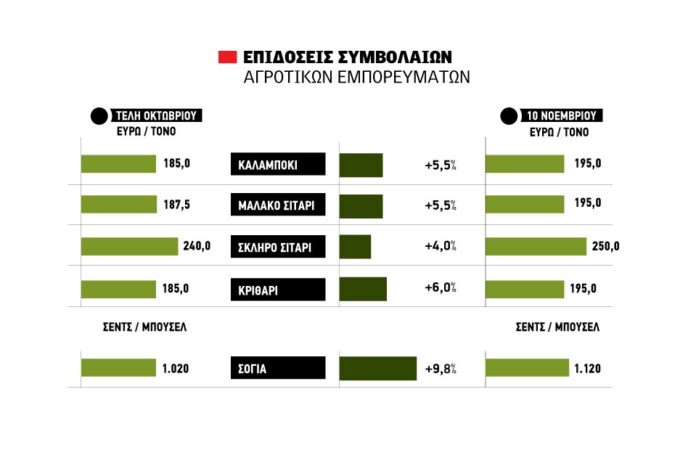Θετική επίγευση άφησε η κίνηση αυτή και στα συµβόλαια για κτηνοτροφικό κριθάρι. Μετά από περίπου 70 κλεισίµατα στο εύρος 180 – 187 ευρώ ο τόνος, µεσοβδόµαδα Τετάρτη και Πέµπτη για πρώτη φορά τα συµβόλαια αγοράς στο γαλλικό Ρουέν έµειναν πάνω από τα 192 ευρώ ο τόνος, βάζοντας πλώρη ίσως για τα 200 ευρώ ο τόνος.