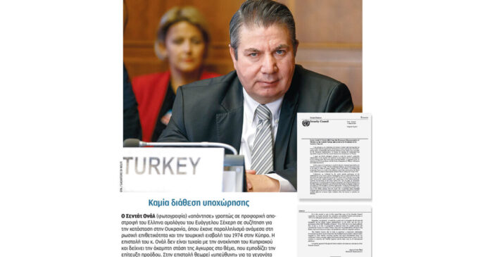 Εξαιρετικά επιθετική η επιστολή του μόνιμου αντιπροσώπου της Τουρκίας στα Ηνωμένα Εθνη, Σεντάτ Ονάλ.