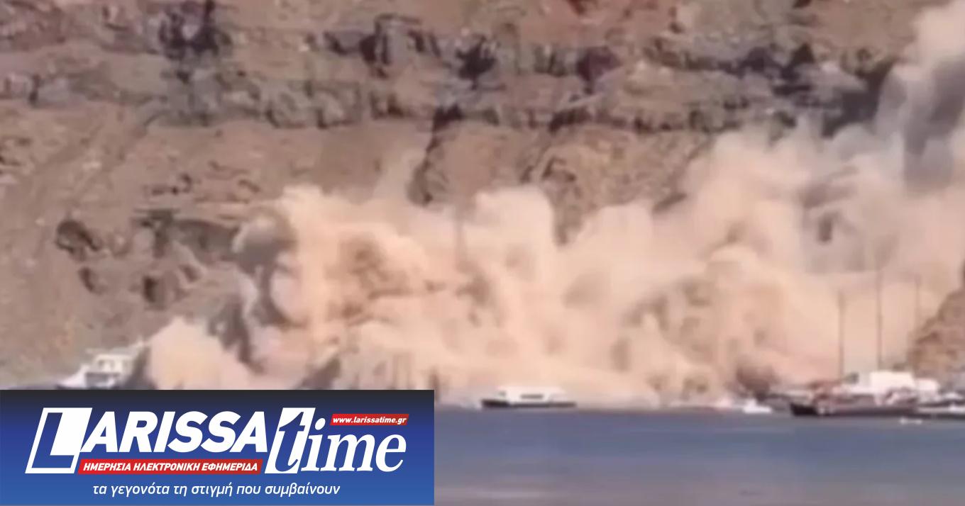 Ένα τρομακτικό σύννεφο σκόνης κάλυψε την Κυριακή το Ημεροβίγλι στη Σαντορίνη, όταν τμήμα γης κατέρρευσε ξαφνικά, παρασύροντας τα πάντα στο πέρασμά του.