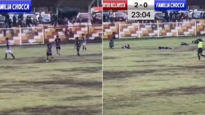 Goalkeeper Juan Chocca Llacta, 40, also received a direct strike and was rushed to hospital in a taxi with serious… pic.twitter.com/7zdnwAoc8c