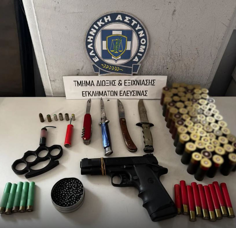 Από αστυνομικούς του Τμήματος Δίωξης και Εξιχνίασης Εγκλημάτων Ελευσίνας, συνελήφθησαν μεσημβρινές ώρες της 15-10-2025 στην περιοχή της Ελευσίνας, 3 ημεδαποί, ηλικίας 17, 45 και 53 ετών κατηγορούμενοι -κατά περίπτωση- για παράβαση του νόμων περί όπλων και περί φωτοβολίδων, απειλή, εξύβριση καθώς και για παραμέληση εποπτείας ανηλίκων.