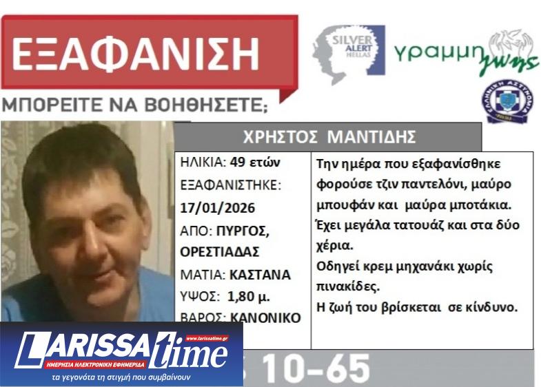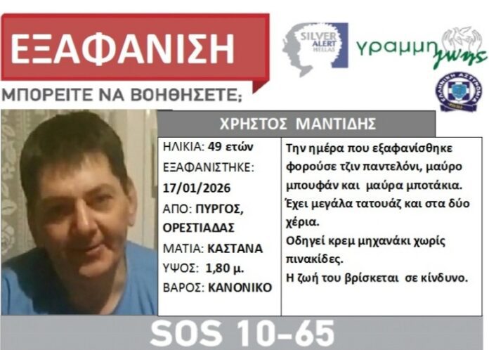 Τραγική κατάληξη είχαν οι έρευνες για τον εντοπισμό του 48χρονου Χρήστου Μαντίδη, τα ίχνη του οποίου είχαν χαθεί από τις 17 Ιανουαρίου, από τον Πύργο Ορεστιάδας, όπου διέμενε.