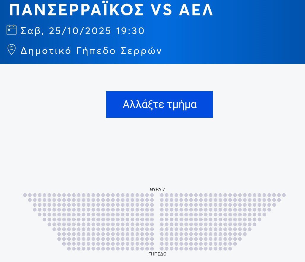 Εξαντλήθηκαν τα εισιτήρια της ΑΕΛ για την εκτός έδρας αναμέτρηση με τον Πανσερραϊκό, που θα γίνει το Σάββατο 25 Οκτωβρίου 2025 στις 19:30 στο Δημοτικό Γήπεδο Σερρών, για την 7η αγωνιστική του πρωταθλήματος της Super League. Οι φίλαθλοι των «βυσσινί» έκαναν το αναμενόμενο, εξάντλησαν μέσα σε λίγες ώρες τα περίπου 500 διαθέσιμα εισιτήρια για τη Θύρα 7, τα οποία είχαν 20 ευρώ το καθένα και θα βρίσκονται στο πλευρό της ομάδας και στις Σέρρες, για το εκτός έδρας παιχνίδι με τον Πανσερραϊκό.