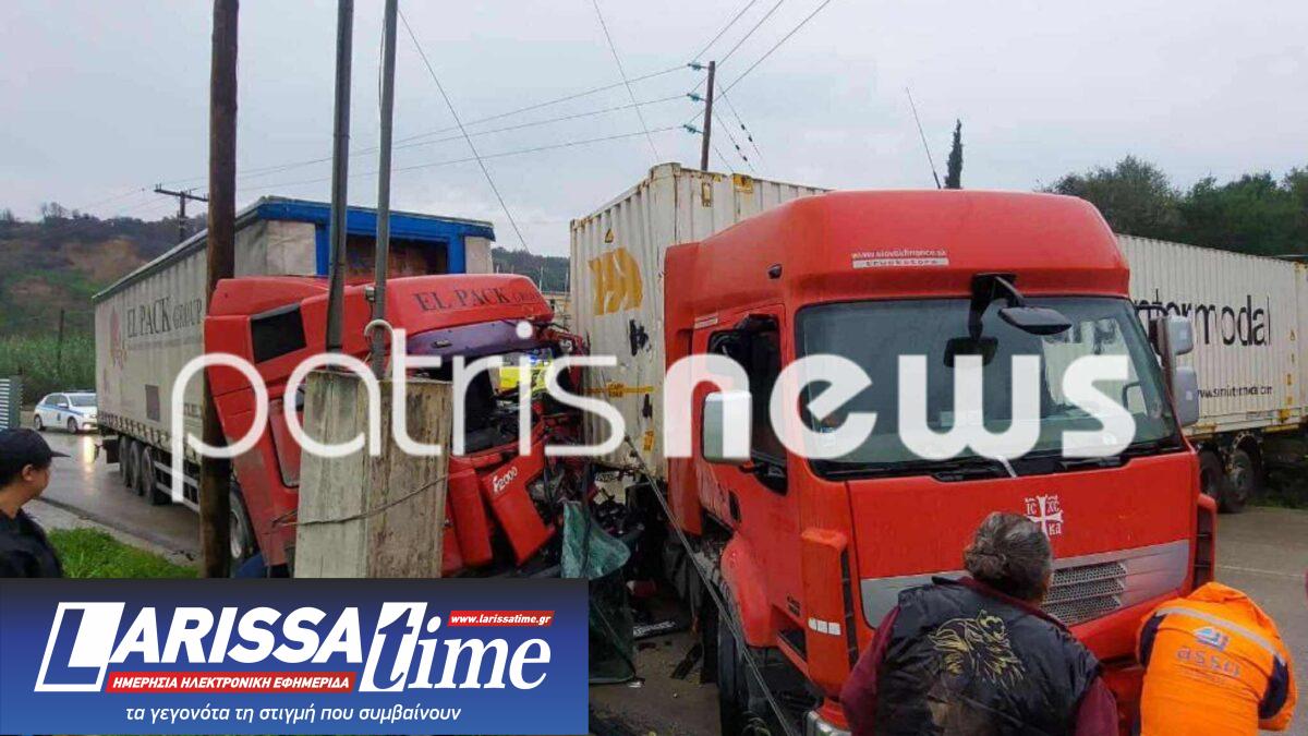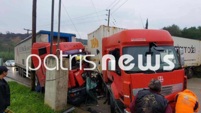 Συναγερμός σήμανε πριν από λίγη ώρα στην Εθνική Οδό Πατρών–Πύργου, κοντά στη ΒΙΠΕ Πατρών, όταν δύο νταλίκες συγκρούστηκαν με σφοδρότητα, προκαλώντας εκτεταμένες ζημιές και τον εγκλωβισμό ενός από τους οδηγούς.