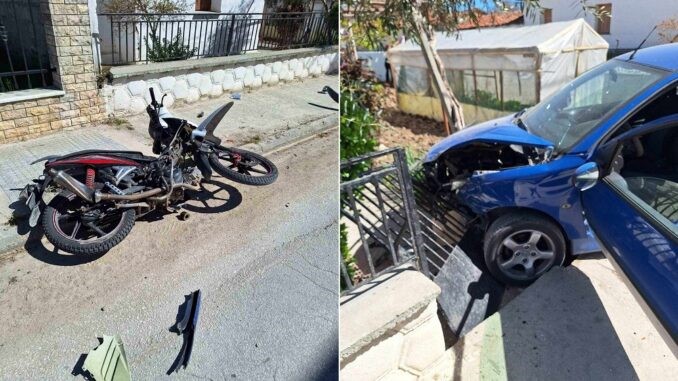 Ενας νεαρός οδηγός μοτοποδηλάτου, ηλικίας 15 περίπου ετών, τραυματίστηκε σοβαρά σήμερα λίγο μετά τις 2.00 το μεσημέρι όταν κάτω από αδιευκρίνιστες μέχρι στιγμής αιτίες, η μηχανή που οδηγούσε συγκρούστηκε με ΙΧ αυτοκίνητο στο δρόμο Αμπελώνας – Βρυότοπος μέσα στον Αμπελώνα.